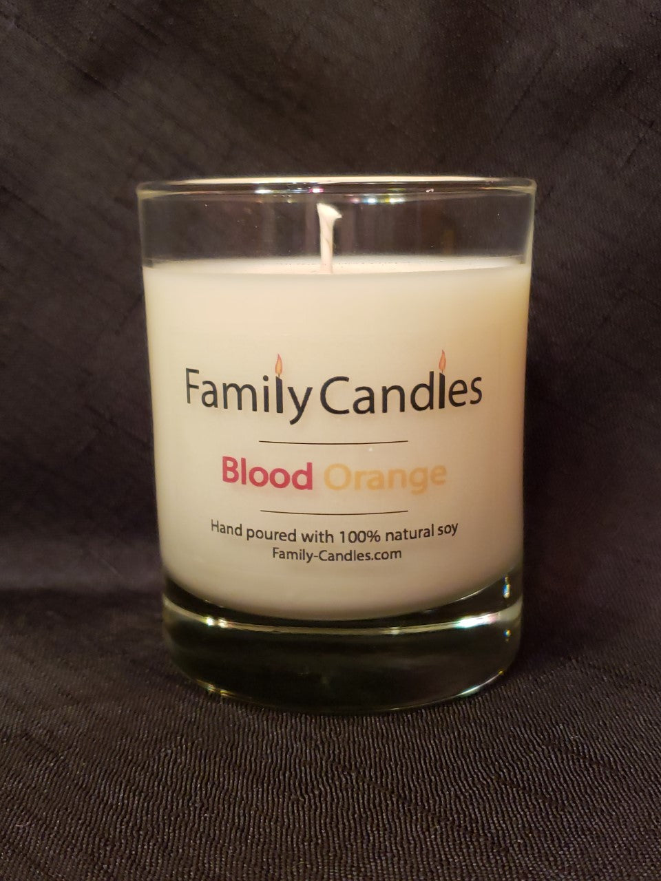 - Blood Orange 8oz Soy Candle - A fresh citrus aroma with green undertones gives our Blood Orange fragrance a true-to-life scent. Full-bodied notes of bergamot and grapefruit fuse with an herbal bouquet for a citrus scent you won't soon forget!