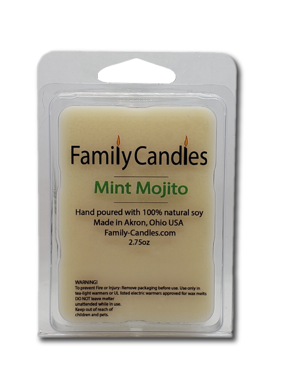 Mint Mojito 2.75oz Wax Melt - Cool, fresh and invigorating, our Mint Mojito Fragrance oil is a true version of the classic Mojito cocktail. This scent fuses notes of freshly muddled mint with tropical undertones of pineapple and sugarcane.