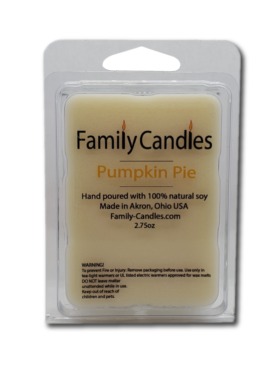 - Pumpkin Pie 2.75 Wax Melt - Look out Grandma! A true-to-life fragrance with notes of pumpkin, spices, and a touch of vanilla whipped cream. A Family Candles best seller and favorite!