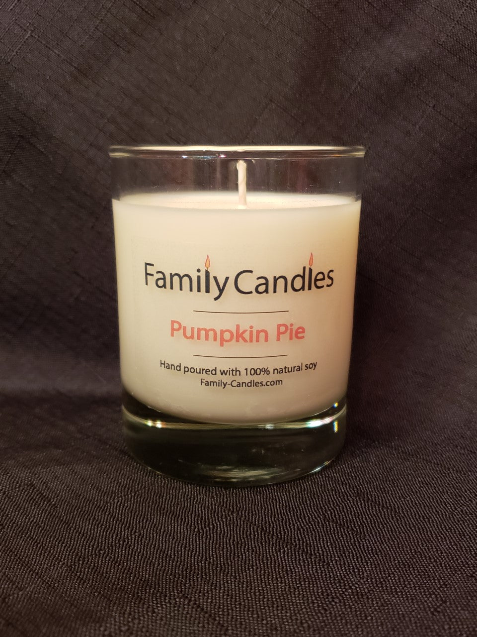 - Pumpkin Pie 8oz Soy Candle - Look out Grandma! A true-to-life fragrance with notes of pumpkin, spices, and a touch of vanilla whipped cream. A Family Candles best seller and favorite!