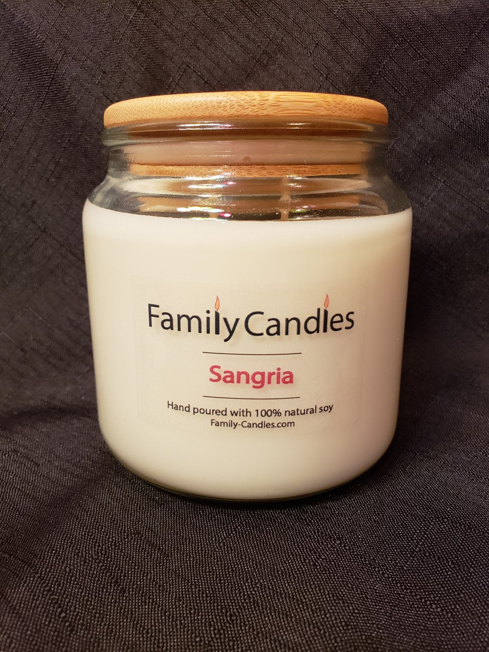 - Sangria 16oz soy candle - Sangria can be made a million different ways, and it always seems to taste incredible! Our candle smells just like our favorite sangria - We start with a pile of juicy red raspberries, add some cherries and lemon, lots of sweet red wine poured on top, and a hint of orange as a garnish!