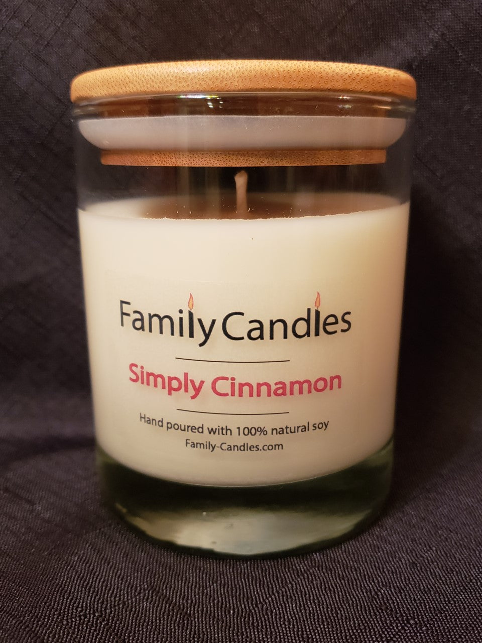 - Simply Cinnamon 12oz soy candle - Sweet, warm cinnamon candies make for a gourmand fragrance that works year round or as a holiday special. These candles are infused with natural essential oils, including Cinnamon, Clove, Cinnamon Bark and Nutmeg. The combination makes for a good strong cinnamon, almost red hot scent! Remember the red hot candies.....