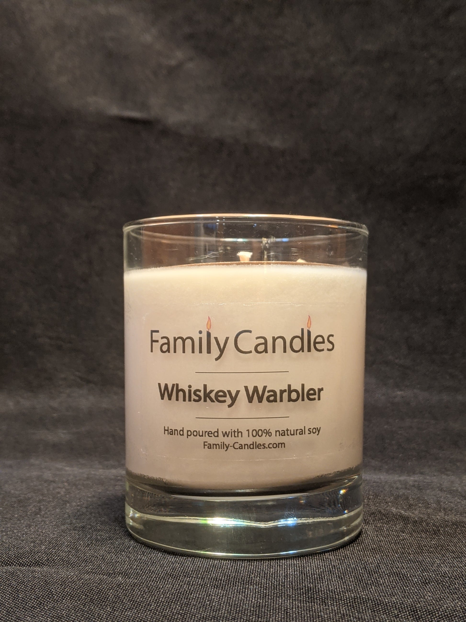 - Whiskey Warbler 8oz Soy Candle - Though there are many different styles and origins, the essential aroma of whiskey is unmistakable. Also known as the "water of life," our Whiskey fragrance is an intoxicating blend of potent alcohol notes and smoked oak.