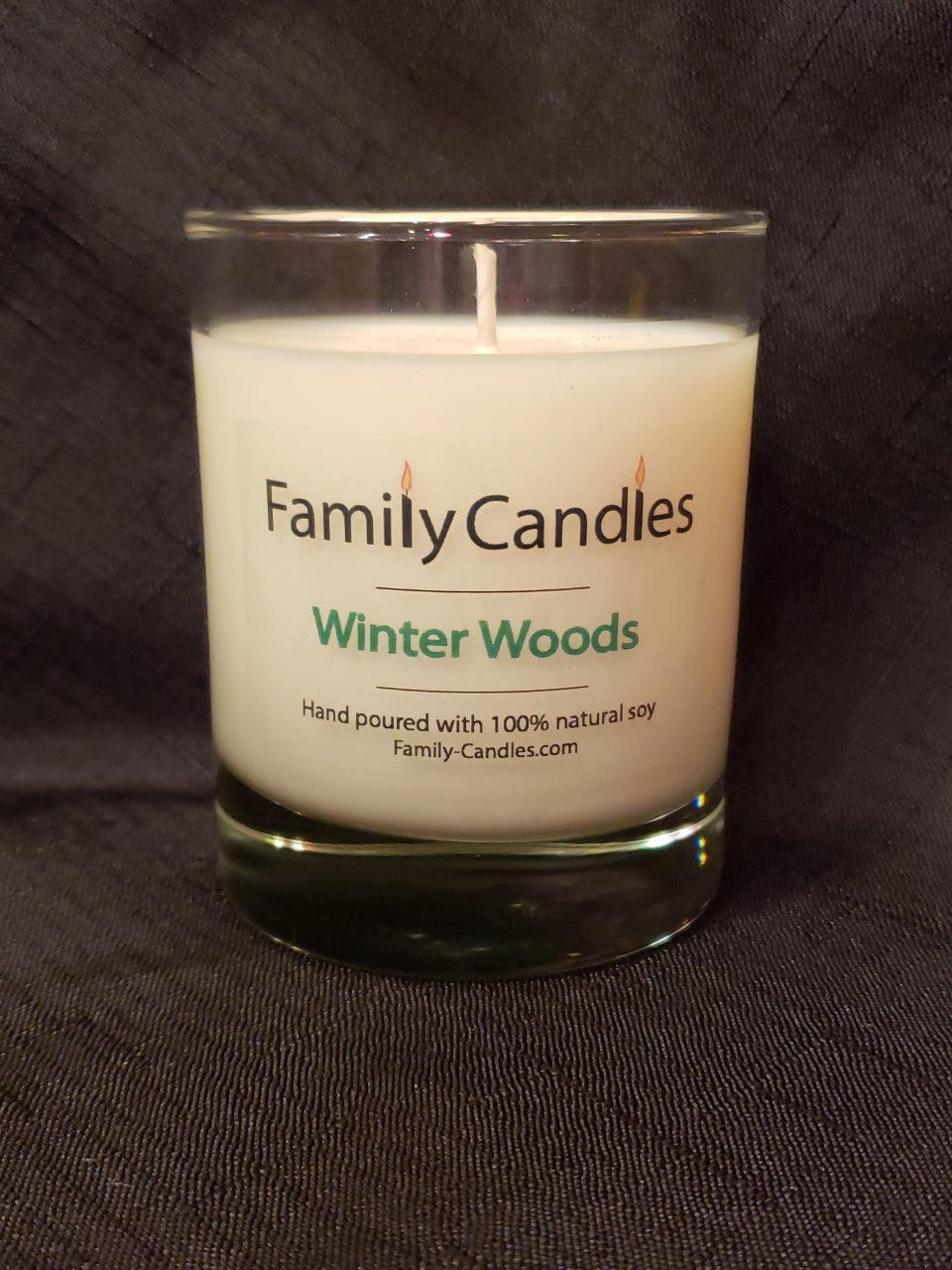 - Winter Woods 8oz soy candle - Saunter through an evergreen forest with our Winter Woods fragrance. This upscale scent opens with refreshing ozone, bay laurel, and cooling eucalyptus. Middle notes of cypress, moss, and bayberry blend with rich undertones of fir balsam, patchouli, and sweet incense. Fir, patchouli, eucalyptus, and mint essential oils intensify the fresh foliage notes.